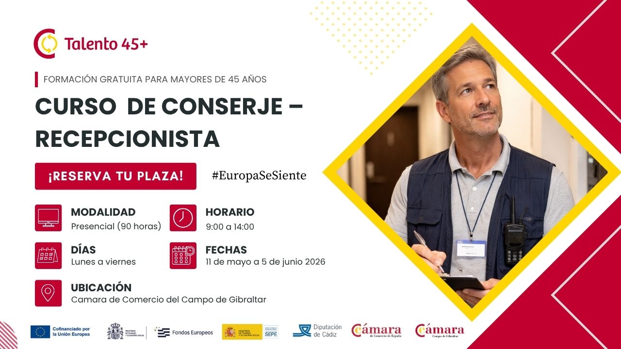 Esta formación se engloba dentro las actividades y servicios enmarcados dentro del Programa 45+ impulsado por la Cámara de Comercio, a través de la Cámara de España y cofinanciado por el Fondo Social Europeo (FSE+) y el Servicio Empleo Público Estatal (SEPE).