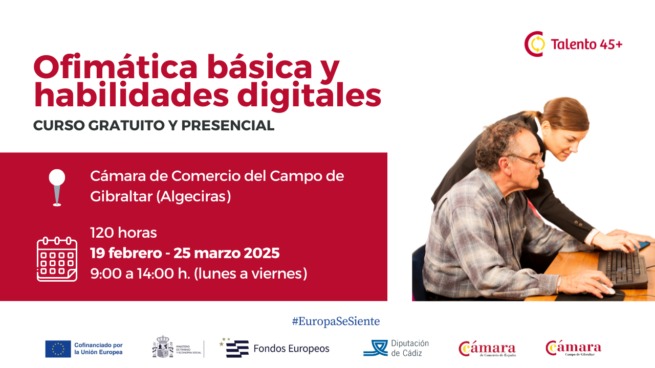 Esta formación se engloba dentro las actividades y servicios enmarcados dentro del Programa 45+ impulsado por la Cámara de Comercio, a través de la Cámara de España y cofinanciado por el Fondo Social Europeo (FSE).